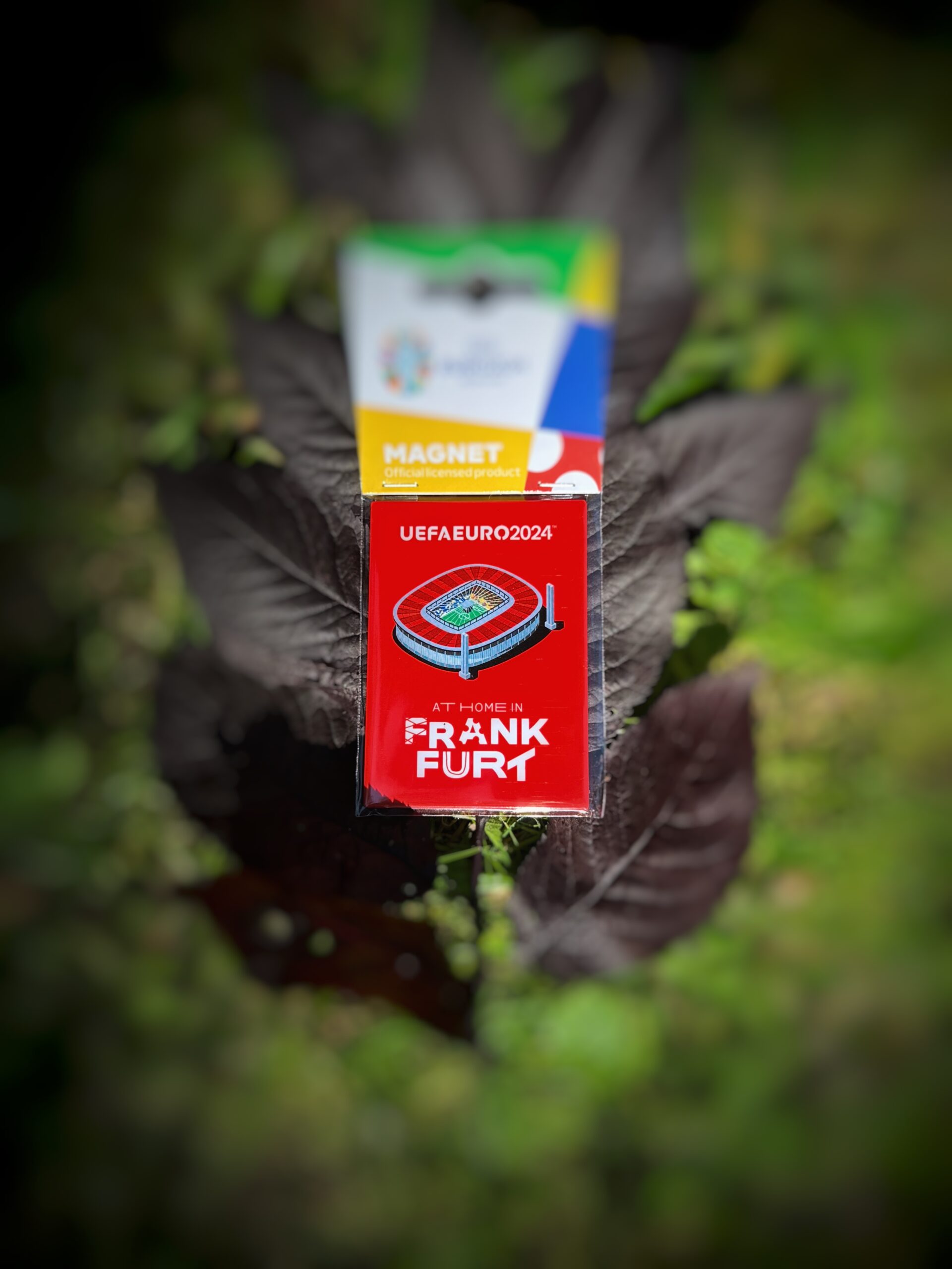 Celebrate UEFA Euro 2024 with this official Host City Frankfurt magnet, featuring a design inspired by Frankfurt’s iconic football stadium. The magnet captures the vibrant spirit of the host city with a rich color scheme and detailed stadium artwork.