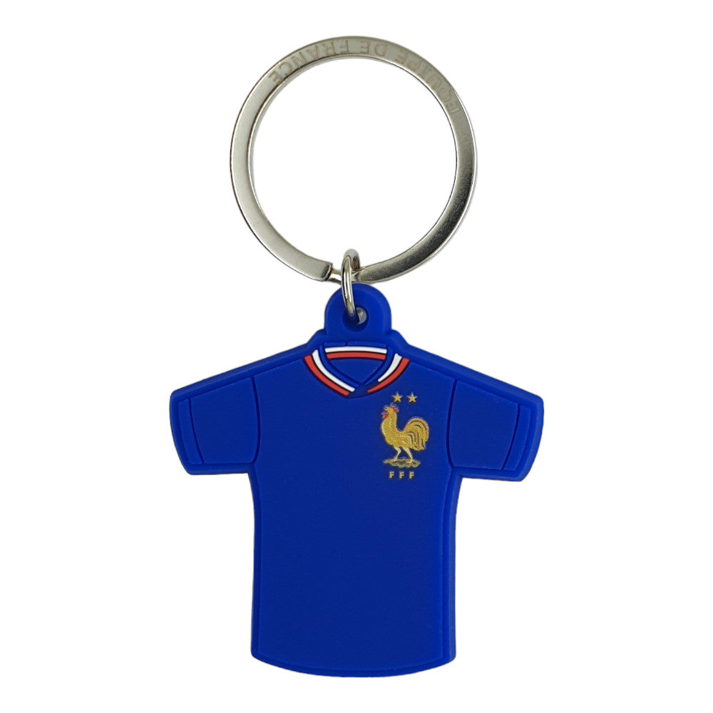 This vibrant keyring features a detailed PVC replica of the France national team’s 2024/25 season jerseys. The front displays the home kit, while the back shows the away kit. Adorned with the golden rooster emblem and two stars, it celebrates the team’s proud heritage and recent triumphs.