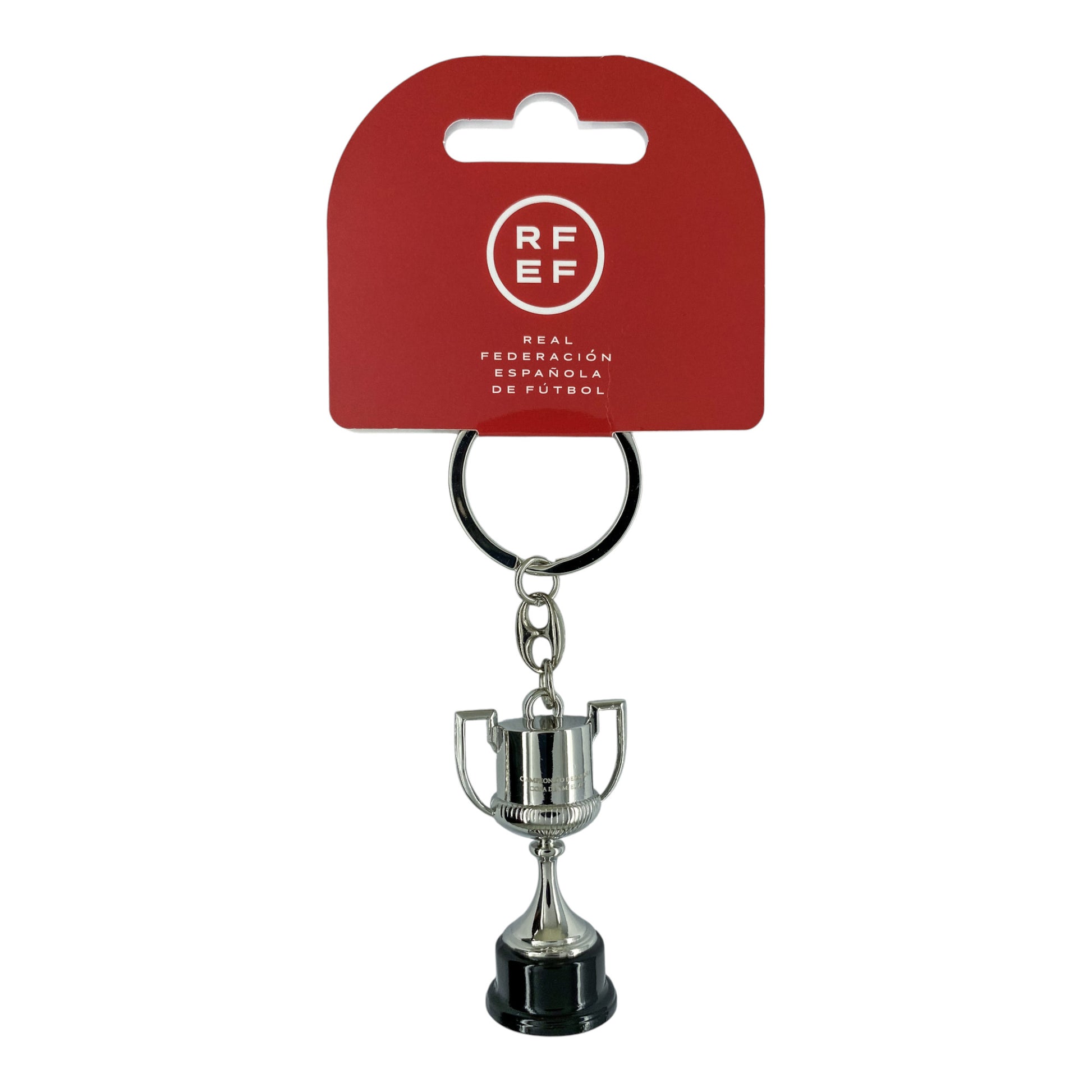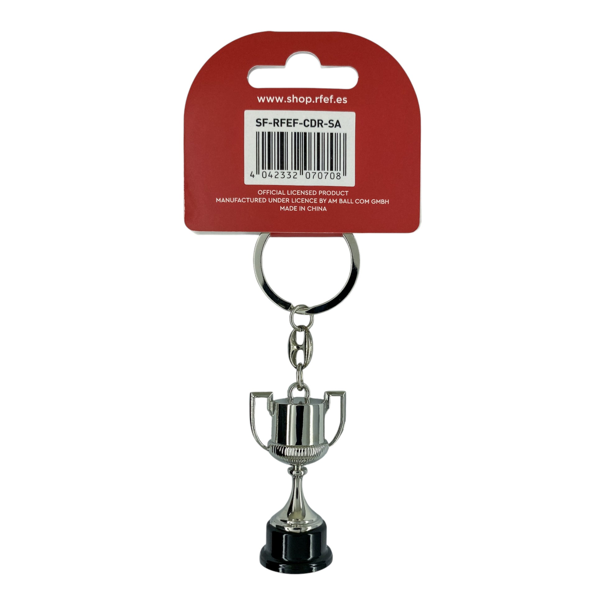 This Copa del Rey keyring is a finely crafted miniature replica of Spain’s iconic football trophy, designed to celebrate the rich heritage of one of the country’s most prestigious tournaments.