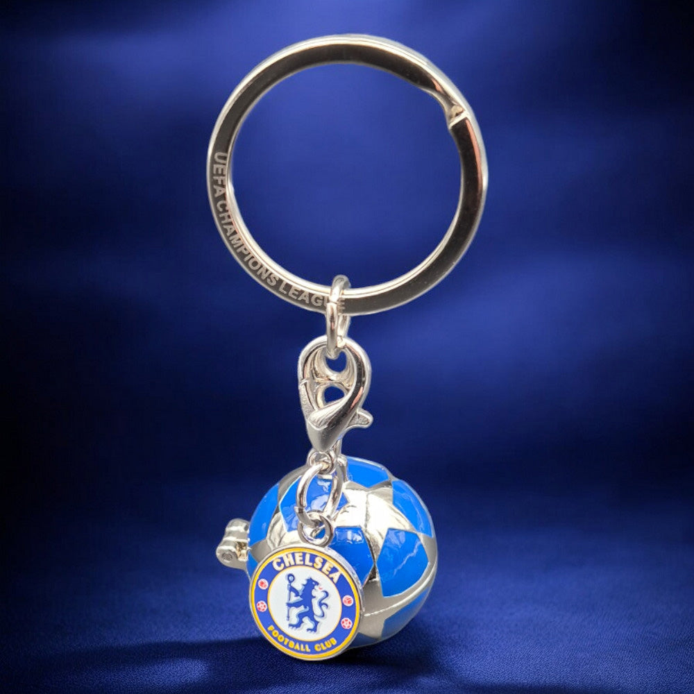 The keyring also includes a tag with the Chelsea FC logo, making it an ideal collectible and accessory for Chelsea fans and Champions League enthusiasts.