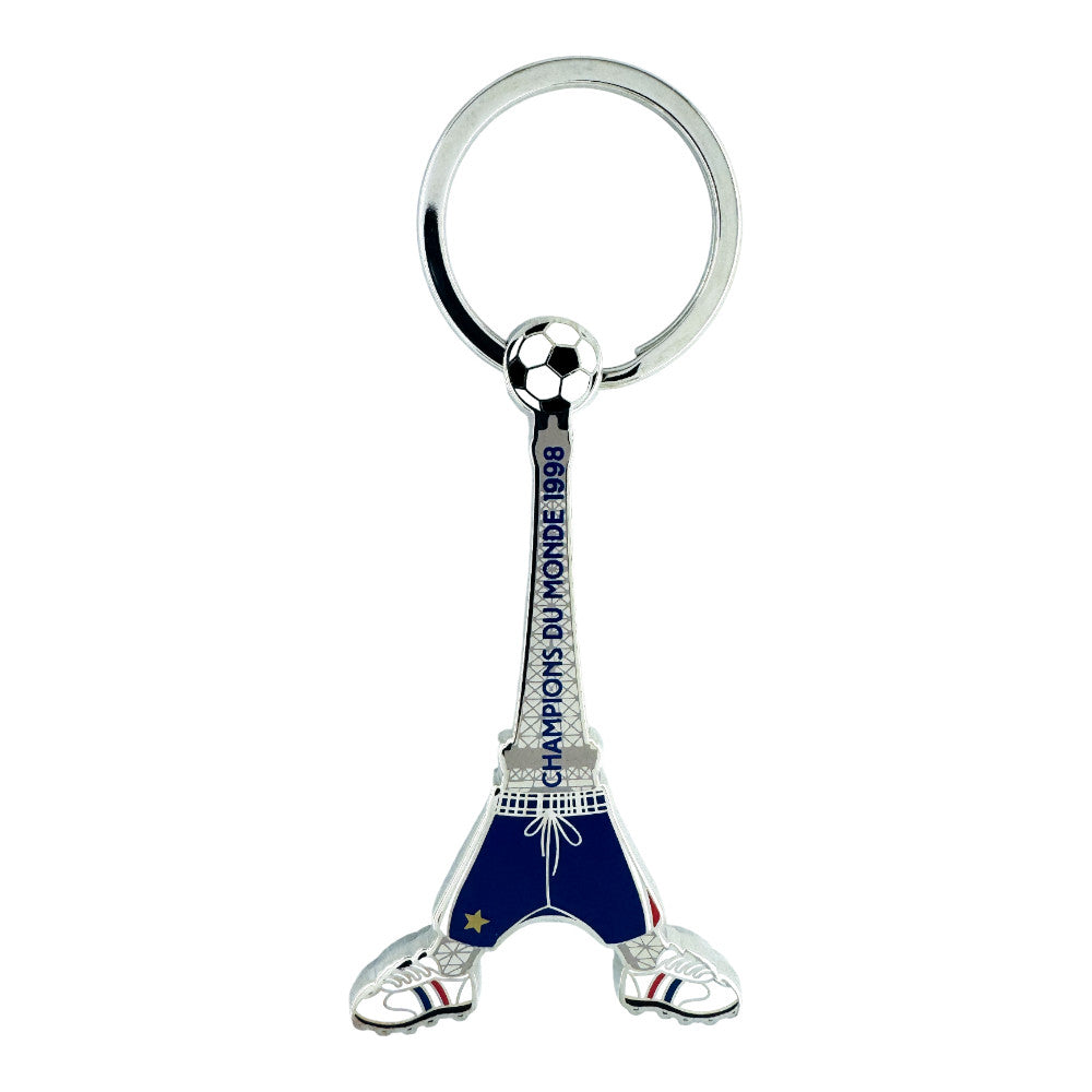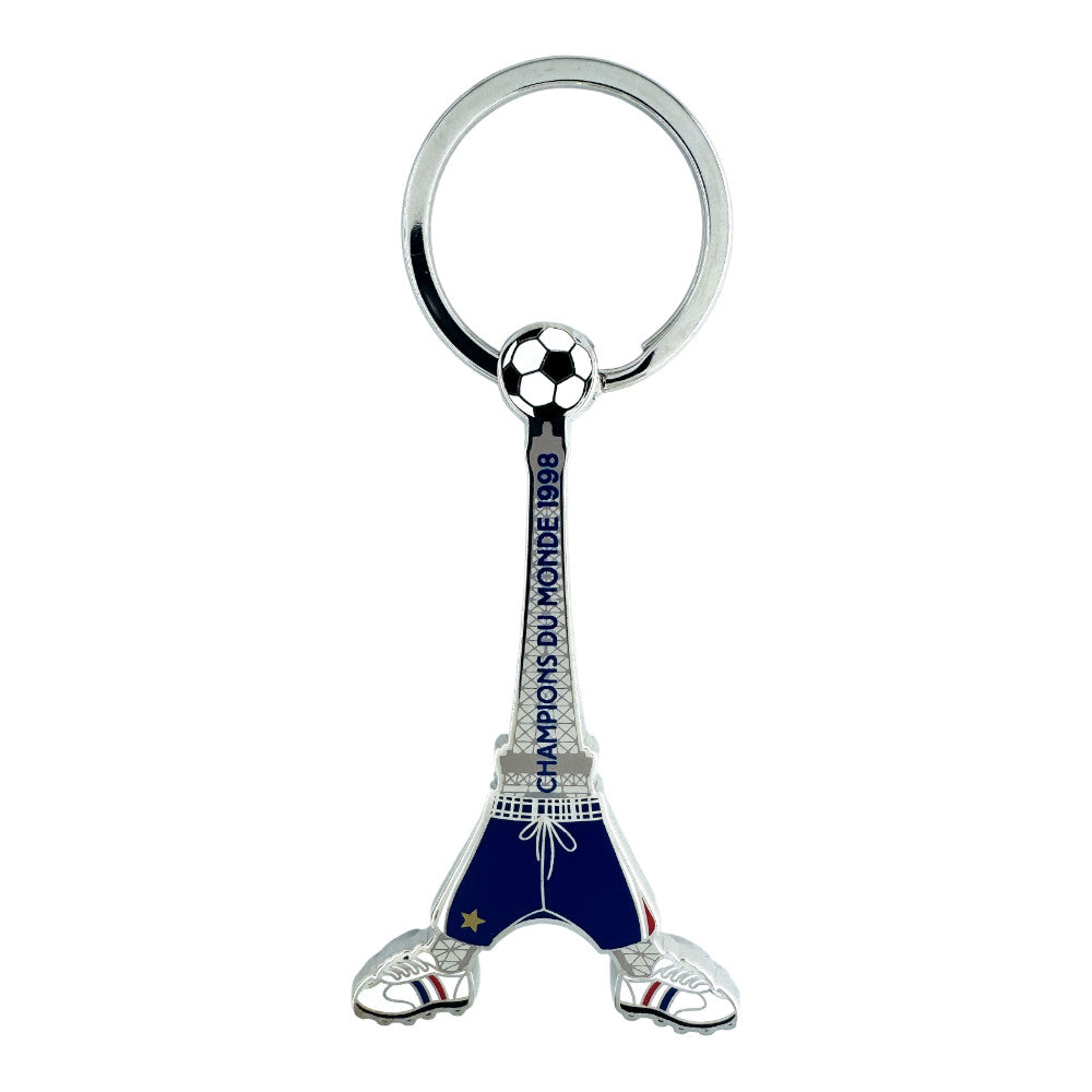 Auf der Spitze des Turms thront ein Fußball, der ikonische französische Symbolik mit dem Sport verbindet. Dieser einzigartige und verspielte Schlüsselanhänger ist ein perfektes Sammlerstück für Fans, die stolz auf Frankreichs historischen Erfolg bei der Weltmeisterschaft sind.